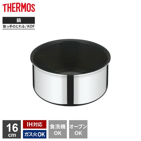 サーモス IH対応 デュラブル 取っ手のとれる 鍋 16cm ステンレス KOF-016 | THERMOS 鍋 小型 ミラー仕上げ PFOA PFOS フリー 食洗機対応 耐摩耗性 コンパクト オーブンOK アルミ ステンレス おしゃれ