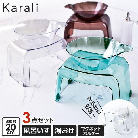 リッチェル カラリ 風呂いす20cm+湯おけ+収納用マグネットホルダー ナチュラル | 風呂椅子 壁面収納 バスチェア マグネット おしゃれ 洗面器 湯桶 透明 風呂 壁 掛け 乾きやすい バス用品 Karali 浴室収納