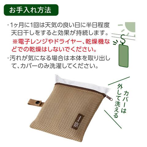 材質:本体/竹炭、B型シリカゲル カバー/ポリエステル 不織布/ポリプロピレン、ポリエステル