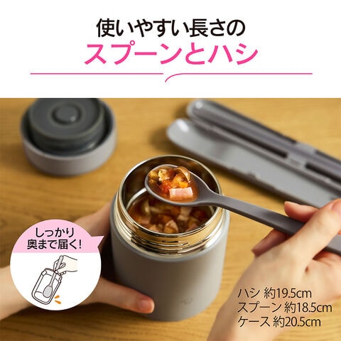 象印 スープジャー 3点セット 520ml+専用ポーチ+スプーン・ハシ エクリュベージュ | ポーチつき 大容量 保温 保冷 スプーンつき ハシつき 食洗機対応 ステンレススープジャー 弁当 保温ランチ カレー シームレス 洗いやすい かわいい