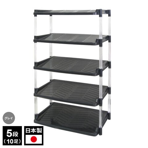 靴収納 クリスタルシューズラック ワイド5段 グレイ | 下駄箱 組立 簡単 玄関 靴箱 日本製 おしゃれ 整理 収納グッズ スリッパ 5段 省スペース スリム