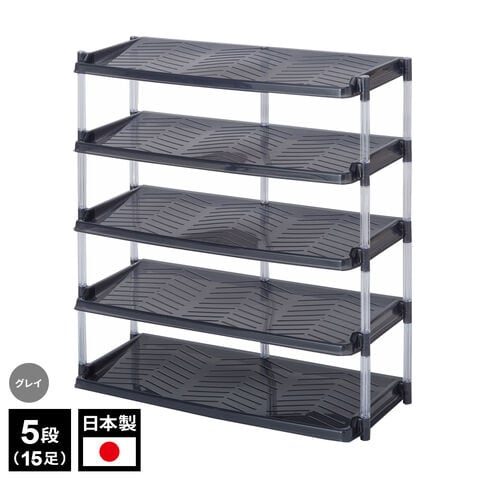 靴収納 クリスタルシューズラック 5段トリプル グレイ | 下駄箱 組立 簡単 玄関 靴箱 日本製 おしゃれ 整理 収納グッズ スリッパ 5段 省スペース スリム