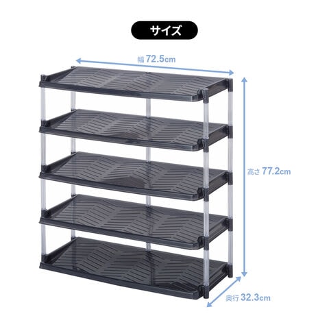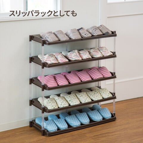 靴やスリッパが1段に3足入り、15足収納できるとってもワイドな5段タイプです。