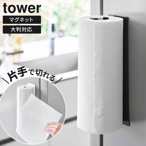 山崎実業 tower タワー 片手でカット キッチンペーパーホルダー マグネット 縦タイプ L ブラック 10271 | キッチンペーパー収納 片手で切れる 大判 コストコ 対応 冷蔵庫横 冷蔵庫 冷蔵庫横 ロールペーパーホルダー 磁石 台所 ペーパーホルダー シンプル ペーパータオルホルダー 簡単