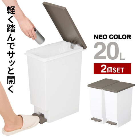 ゴミ箱 日本製 分別 スリムペダル ネオカラー 20L ブラウン 2個セット | ダストボックス フタ付き ごみ箱 足踏み キッチンペール 20リットル ペダルペール 蓋付 袋止め 台所 ふた付き 資源ごみ プラスチック シンプル
