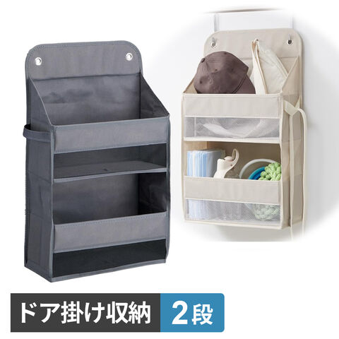 フックで浮かせて整える、2段タイプのドア掛け収納。