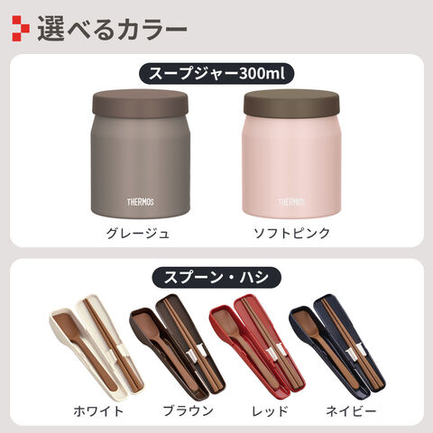 サーモス スープジャー 2点セット(スープジャー+スプーン・ハシ) 300ml ソフトピンク JEF-300 | THERMOS 食洗器対応 スープ用 JEF-300 パッキン一体型 保温 保冷 味噌汁 大容量 保温容器 保温弁当 魔法瓶 スープ マグ 弁当箱 ランチポット 汁物 洗いやすい カレー