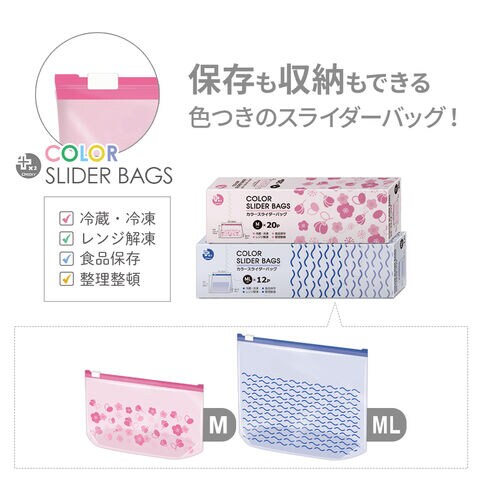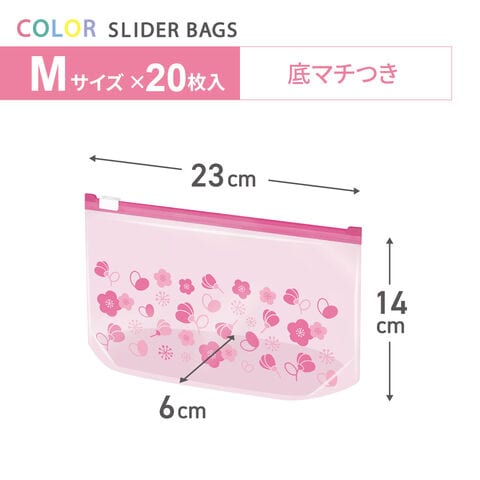 ポリ袋 カラー スライダー バッグ M20枚(ピンク) | ジッパー付き袋 ビニール袋 かわいい カラー 色 マチつき スライダー 自立 保存用袋 食品保存 冷蔵 冷凍 レンジ解凍 小分け 携帯 小物収納 フリーザーバッグ 旅行 お出かけ