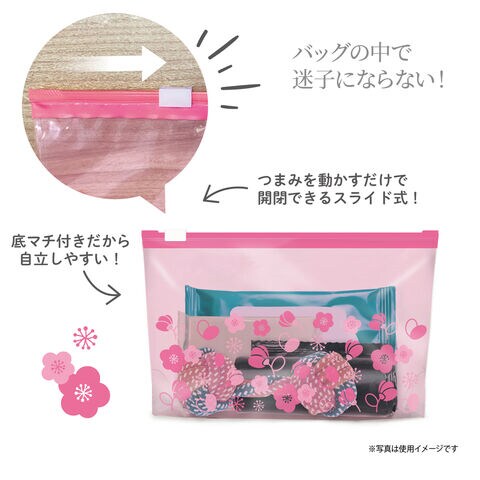 これ一つで「しまう」がもっと自由になる、かわいい柄の入ったスライダーバッグ。