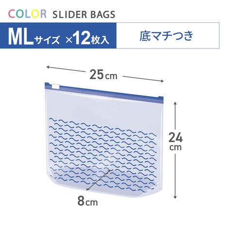 スペック1袋のサイズ(約):M/横23×高さ(ジッパーより下)14×底マチ6cm ML/横25×高さ(ジッパーより下)24×底マチ8cm