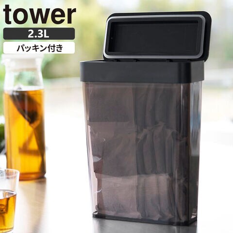山崎実業 tower タワー パッキン付き スリム収納ケース 2.3L ブラック 10392 | 密閉 保存容器 食品 ストッカー 収納 プラスチック キッチン キャニスター 調味料 麦茶パック ストック 保管 スリム コンパクト シンプル おしゃれ 白 黒