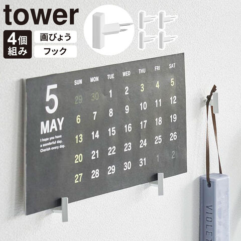 山崎実業 tower タワー 2本の針で抜けにくい フック画鋲 S ホワイト 4個組 1923 | 穴が目立たない フック 画びょう ピン おしゃれ かわいい シンプル モダン スタイリッシュ 壁掛け 石こうボード 小物掛け ポスター カレンダー 1kgまで 4個セット 白 黒