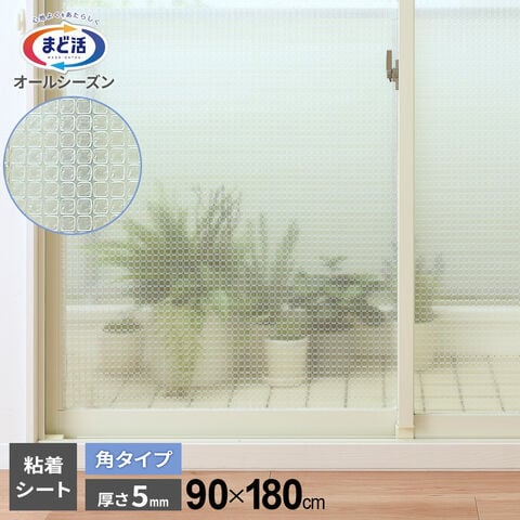 窓 断熱シート マドピタシート 角タイプ 90×180cm クリア H-1605 | 窓ガラス 断熱 結露防止 冷気遮断 寒さ対策 UVカット 紫外線カット オールシーズン おしゃれ 透明 冬 夏 水不要 シール プチプチ 窓に 貼る 暑さ対策