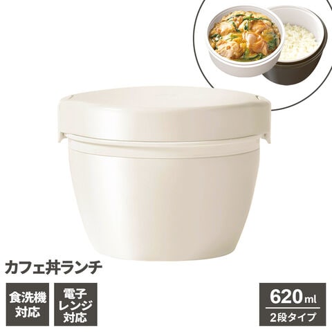 保温弁当箱 ランタス カフェ丼ランチ 620ml ホワイト 3607 | ランチジャー ランチボックス 弁当箱 2段 どんぶり 丼 電子レンジ対応 食洗機対応 抗菌 ステンレス シンプル おしゃれ 女性 男性 カレー シチュー 丼 麺