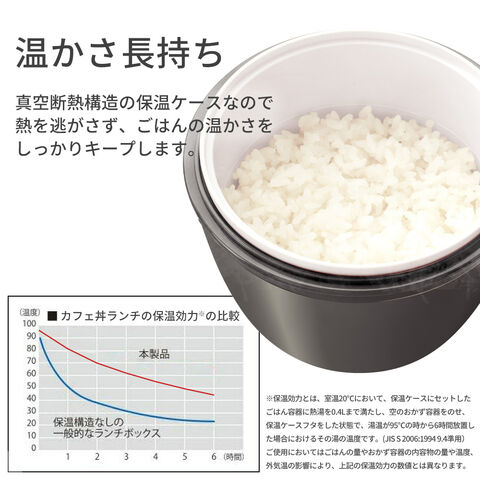 温かさ長持ち保温ケースはステンレス製の真空断熱構造で、ごはんの温かさをしっかりキープ。