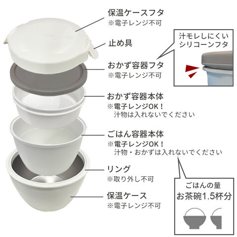 レンジも使える電子レンジ対応の容器なので温め直しができ、アツアツで食べたい人にも◎。※各フタ・保温ケースを除く