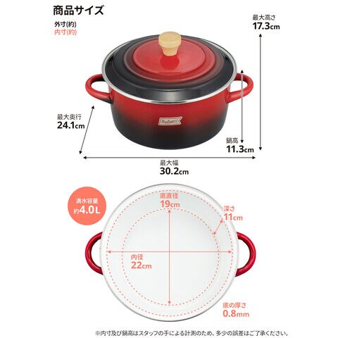 ホーロー鍋 ルバーニ ホーロー 両手鍋 22cm RA-9791 | IH対応 ガス火 直火 ほうろう 琺瑯 小さい 2~3人 かわいい じっくり調理 煮込み カレー 両手 鍋