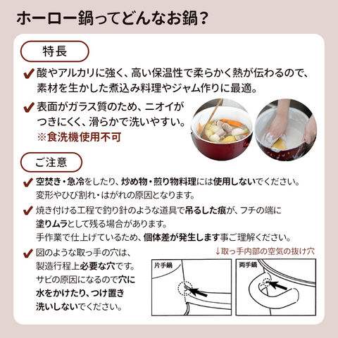 ホーロー製酸やアルカリに強いので、素材を生かした煮込み料理やジャム作りに最適です。