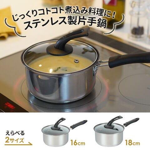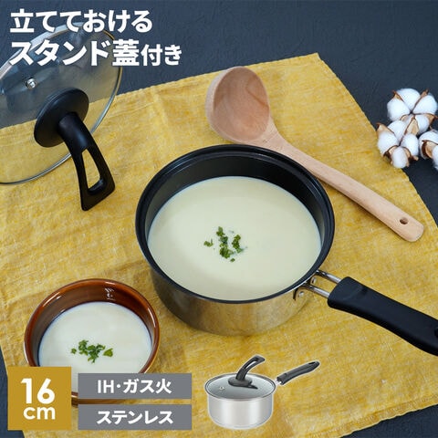 鍋 スタンド蓋 ステンスター IH対応 片手鍋 16cm RB-2888 | ステンレス IH ガス火対応 直火 ガスコンロ PFOAフリー 小さい 一人暮らし ふっ素樹脂加工 取っ手付きフタ 蓋 立つ ガラス蓋 フタ付き