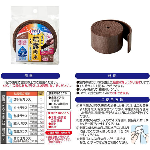 パワフル結露吸水テープ すりガラス対応 広幅 6cm×2m ブラウン | 窓ガラス 結露対策 カビ対策 水滴 水分 吸い取り 結露防止テープ 強力 吸収