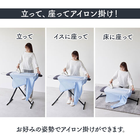 スチームが抜けるから、仕上がりきれい!立って・座って、お好みの高さでアイロン掛けができる人体型のアイロン台。