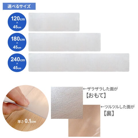 透明マット キッチンマット 45×120cm | 透明 クリア 拭ける マット 見せる床 撥水 台所マット 洗濯いらず カットできる 防カビ 防水性 衝撃から守る シンプル おしゃれ