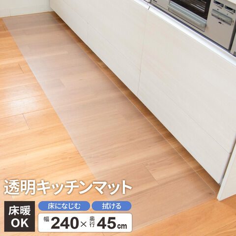 透明マット キッチンマット 45×240cm | 透明 クリア 拭ける マット 見せる床 撥水 台所マット 洗濯いらず カットできる 防カビ 防水性 衝撃から守る シンプル おしゃれ