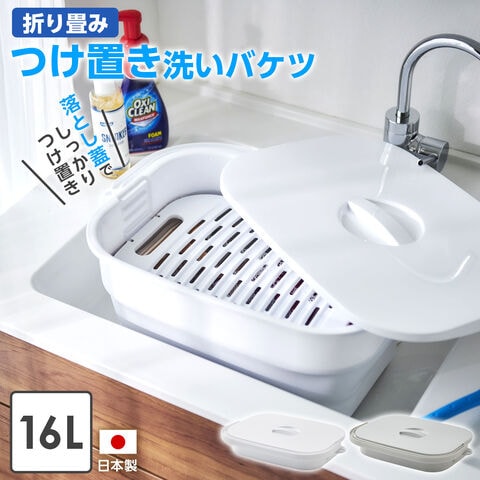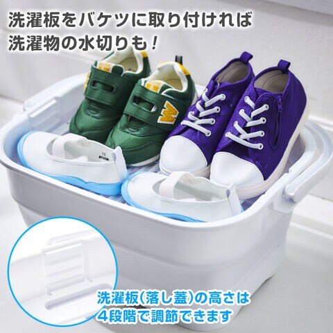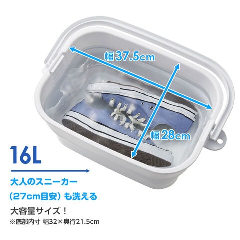 折りたためるつけ置き洗いバケツNEO 16L ホワイト I-647 | 靴洗い つけ置き 折りたたみ 洗濯板 蓋付き フタ コンパクト 吊り下げ収納 落とし蓋 プラスチック 折り畳み 保育園 小学生 幼稚園 スニーカー 上履き 上靴 ズック