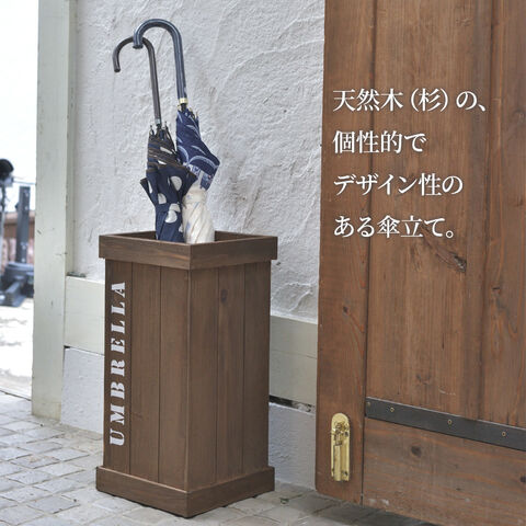 傘立て アンブレラスタンド ウッド ナチュラル LFS-474BR / LFS-474NA | アンブレラ 天然木 傘入れ 傘 かさ カサタテ シンプル コンテナ おしゃれ 玄関 玄関収納 レイングッズ スタンド 傘置き レインラック エントランス スリム 角柱 木製