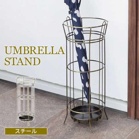 傘立て アンブレラスタンド スチール 脚付き アンティークゴールド AKB-437AGD / AKB-437BK | アンブレラ 傘入れ 傘 かさ カサタテ シンプル スリム おしゃれ 玄関 玄関収納 レイングッズ スタンド 傘置き レインラック エントランス 円柱 鉄 アイアン