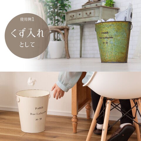 インテリア バケツ ダストボックス アイボリー LFS-426IV | ゴミ箱 くず入れ 収納 カゴ お洒落 雑貨 ヴィンテージ ブリキ 軽い アンティーク レトロ