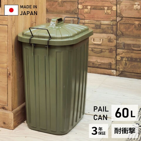 ゴミ箱 ペールカン 60L グリーン LFS-937GR | 屋外 室内 日本製 メーカー保証付き ペール 頑丈 丈夫 耐衝撃 ポリバケツ 蓋つき フタ付き 角丸 軽い