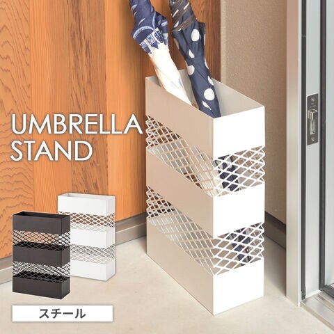 傘立て アンブレラスタンド スチール 長方形 ホワイト LFS-182 | アンブレラ 傘入れ 傘 かさ カサタテ シンプル スチール製 鉄 カッティング ネット スリム おしゃれ 玄関 玄関収納 レイングッズ スタンド 傘置き レインラック エントランス