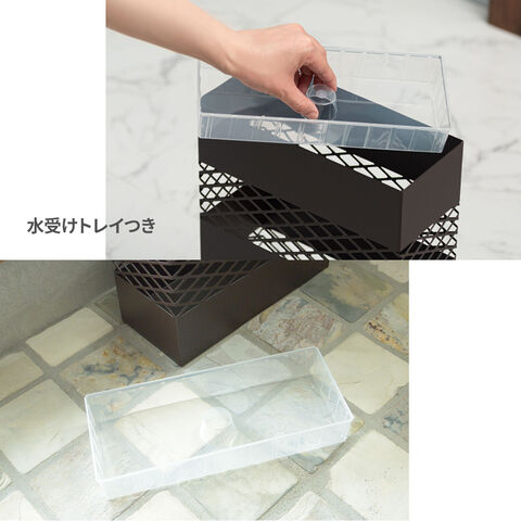 水受けトレイつき水受けトレイが付属しているので、傘から滴り落ちる雨水が外に漏れだすのを防止します。