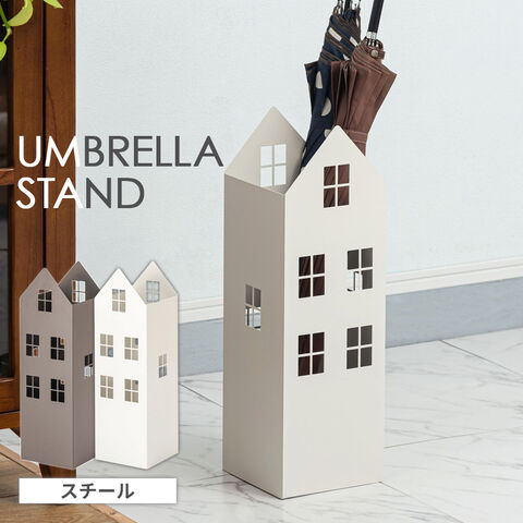 傘立て アンブレラスタンド ハウスシェイプ ホワイト LFS-185 | アンブレラ 傘入れ 傘 かさ カサタテ シンプル スチール製 鉄 カッティング 家 おうち形 スリム おしゃれ 玄関 玄関収納 レイングッズ スタンド 傘置き レインラック エントランス