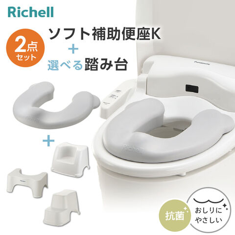 リッチェル ソフト補助便座K + 選べる踏み台 2点セット | 補助 便座 抗菌 補助便座収納 子供 幼児 便座スタンド トイレトレーニング トイトレ 洋式トイレ 補助便座置き 子供トイレ シンプル Richell baby グレー