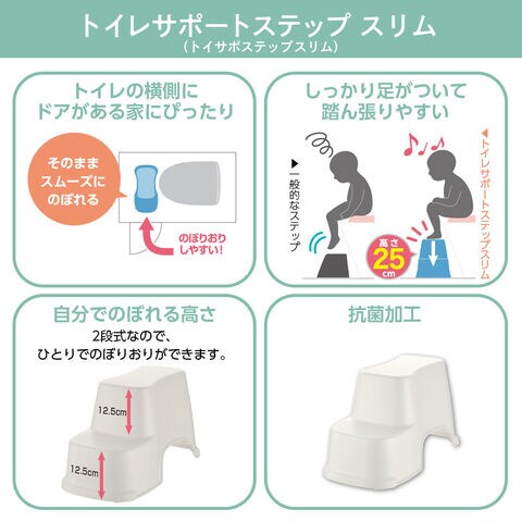 材質:<補助便座>EVA樹脂(抗菌剤入り) <トイサポステップ/スリム>本体/ポリプロピレン ゴム脚/ポリエチレン <ヨークデル>ポリプロピレン