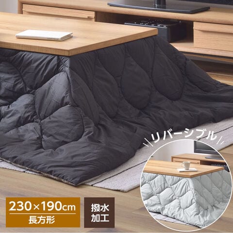 こたつ布団 コタツ布団 長方形 230×190cm ブラック×グレー KK-168B | 撥水加工 汚れにくい ペットの毛がつかない リバーシブル バッグ付き 収納袋付き キャンプ アウトドア 炬燵 掛布団