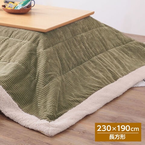 こたつ布団 薄掛け コタツ布団 長方形 230×190cm カーキ KK-142KH | コーデュロイ 薄手 軽い 収納袋付き お洒落 カジュアル こたつ用 温かい 炬燵 掛布団