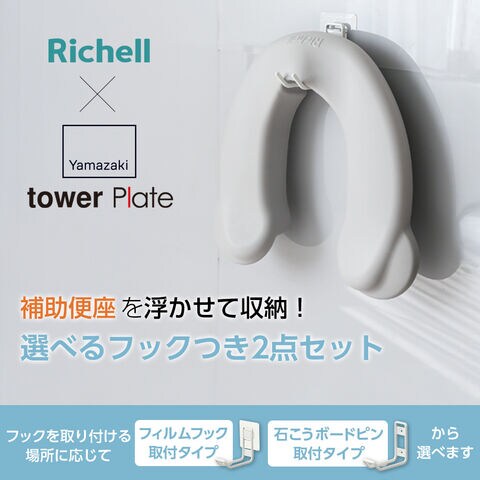 リッチェル 山崎実業 ソフト補助便座K + 収納フック 2点セット | tower Plate 2点セット 抗菌 トイレステップ 子供用 トイトレ トイレトレーニング 洋式トイレ Richell タワー プレート 選べる トイレ 狭い 賃貸