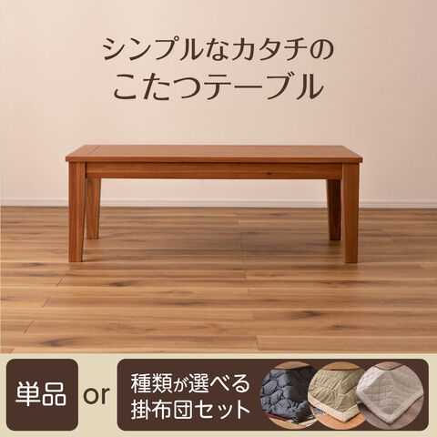 直線的でシンプルなデザインのコタツテーブルとこたつ布団のセット。