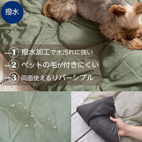こたつ布団【撥水タイプ】撥水加工がされ、水汚れがつきにくいこたつ布団。犬・猫などのペットの毛も絡みにくく、ワンちゃんやネコちゃんのいるご家庭にもおススメです。