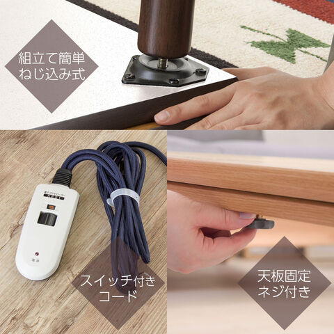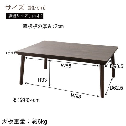 材質:こたつ/天然木化粧繊維板(アッシュ)、天然木(ラバーウッド)、ウレタン塗装、カーボンフラットヒーター300W(MCR-301E)、手元コントローラー 布団/ポリエステル