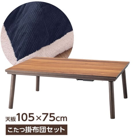 コタツ フラットヒーターこたつ+こたつ布団セット 105×75cm KT-303 | こたつ机 掛け布団付き セット 長方形 カーボンフラットヒーター ひとり暮らし 1~2人用 四角 小さめ 炬燵