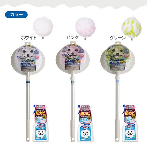 バスボンくん ユニットバスボンくん 抗菌 + バリアコート洗剤セット ピンク N-AL | お風呂掃除 ブラシ スポンジ 柄付き 伸びる 伸縮 浴室 バスルーム ユニットバス 浴槽 床 天井 水だけ やわらかい ふさふさ きれい 掃除 ツール