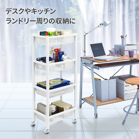 デスクやキッチンまわりで、いろいろな物をまとめて収納できるバスケットワゴン。【4段】