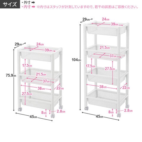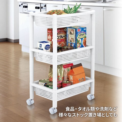 ワゴン システムバスケット SB-4S 4段 ホワイト F-2455 | キッチンラック 収納ワゴン 移動 カゴ キャスター付き リビング ワゴンラック 日本製 サイドテーブル 棚 バスケット 小物入れ サイドワゴン ストック 洗面 浴室 ランドリー
