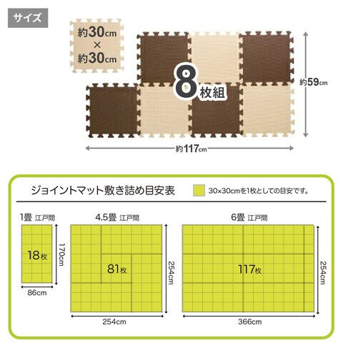 やわらかジョイントマット ポルト 30cm 8枚組 チョコレート | プレイマット ベビーマット 防音 PE マット ジョイント つなげる キッズ ペット フロアマット クッション カラフル カットできる 敷き詰め 衝撃吸収 床 保護