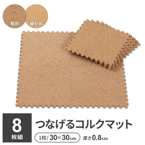 やわらかコルクマット 30cm 8枚組 コルク粗め | プレイマット ベビーマット 防音 PE マット ジョイント つなげる キッズ ペット フロアマット クッション コルク 粗い カットできる 敷き詰め 衝撃吸収 床 保護 床暖房対応