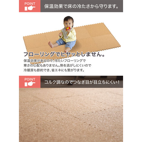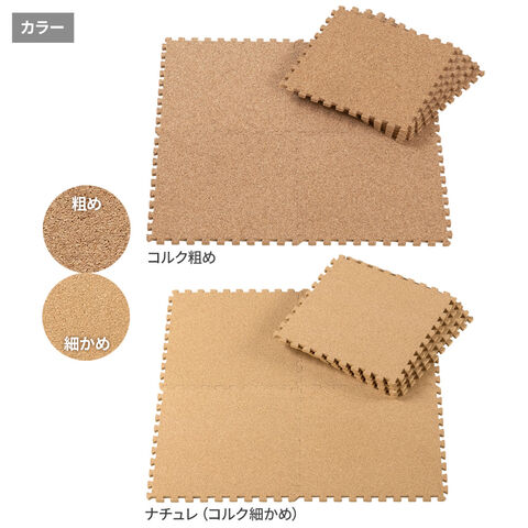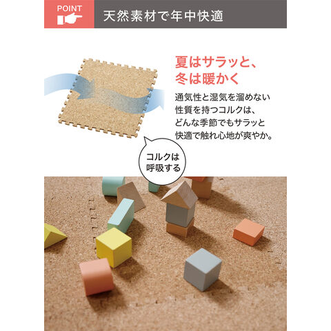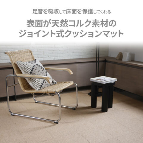 足音を吸収して床面を保護してくれる、表面が天然コルク素材のジョイント式クッションマット。